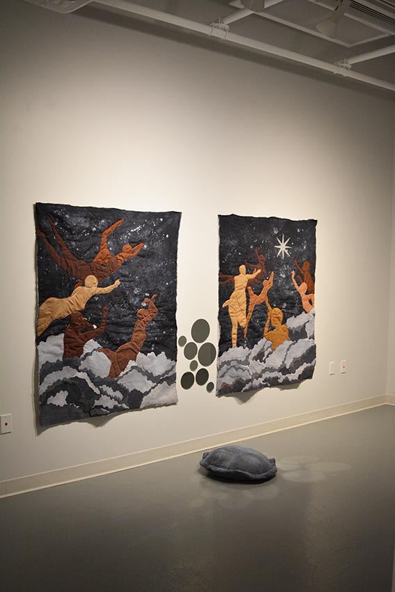 East gallery: Maryam Adib, “Ascent to Polaris”, 2020, Quilted and appliqued fabric, mirrors, 60 x 112 inches.