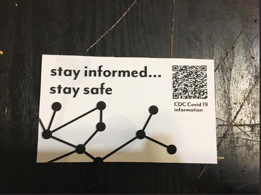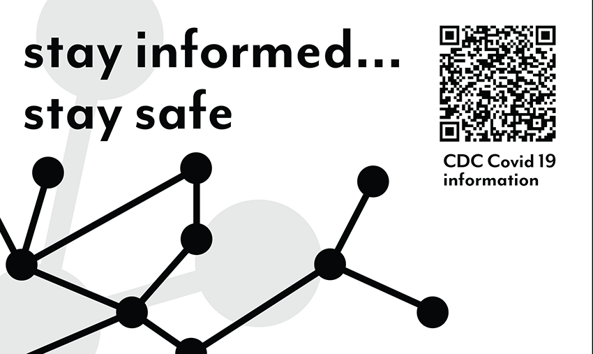 My message for my project was “stay informed… stay safe.” I picked this because the lack of information and the spread of misinformation has led to many of the safety issues we see today. The dots and lines are meant to represent people connecting the dots and putting information together. I included a QR code for the CDC’s website to direct people to quality information. My design is meant to be a sticker so people can put the code up wherever.