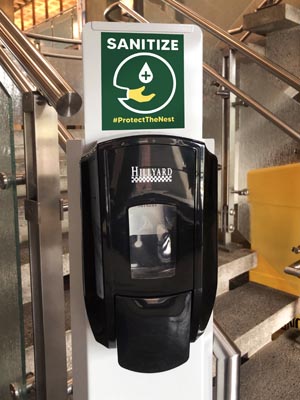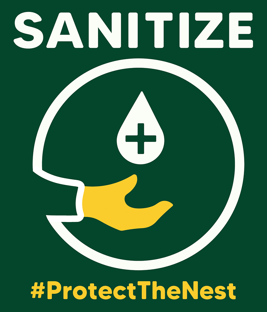 One of the first things I noticed when in-person classes started up again was all of the sanitize stations set up within the building. Wipes are available in each classroom for our workspace and a hand sanitizer dispenser can be found by each door. However, while each classroom station had a little sign about using the wipes, the dispensers by the door had nothing. For this project, I decided to make an eye-catching sign to make the station stand out and send a positive message. Our school’s (SUNY Brockport) message in regard to COVID-19 is “protect the nest” since our mascot is an eagle and we are protecting our home and each other. I took this hashtag and combined it with a simple little hand sanitize icon and the word “sanitize.” Short and sweet as well as eye catching. Not to mention in the college’s colors! This design is simple enough where it could be adapted to other schools as well.