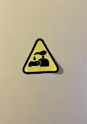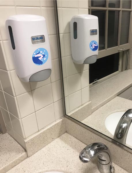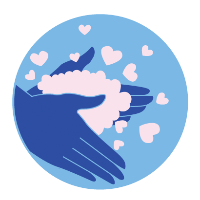 The use of universal symbols in this sticker design provides a quick and easily understood reminder to wash our hands. Hearts, the universal symbol of love, replace soap bubbles to remind us that frequent hand washing is not only an act of care and love for ourselves, but to those around us as well. This sticker would be especially compelling on restroom soap dispensers, mirrors, paper towel dispensers and hand sanitizing stations.