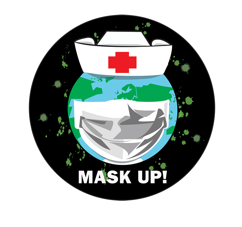 The “Mask Up!” graphic is intended to remind people to wear their masks while in public areas or around large groups of people. The icon for this logo is the Earth wearing a facemask and an old-school nurse’s hat. The nurse’s hat is to help people feel sense a trust while looking at the logo; after all, nurses are people we put our entire trust into to help us with our health. The continents making up the green parts of the Earth, are simple and geometric, so the viewers won’t get distracted by them, and yet, are still true to the actual shapes of the continents making up the Earth’s surface. The facemask has the same geometric characteristics as the continents, making the shadows and folds of the mask. This helps to unify the overall illustrative look of the graphic, making it aesthetically pleasing to view. The Earth is surrounded by small, green circular shapes meant to represent germs trying to get into the Earth. However, they can’t enter or contaminate anyone due to the Earth wearing its facemask. This is meant to show how wearing a facemask can help prevent the spread of germs. Lastly, the slogan of the graphic is “Mask Up!”, this is simple and to the point. It is also a play-off of the saying “Suit Up!”, which people find catchy and easy to remember.
