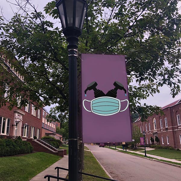 Flags have historically been used to boost morale, to symbolize troops and convey messages. This coincides with my idea of sword and shield. It's like a silent cry, telling every student on campus that they are the most courageous warriors fighting COVID.