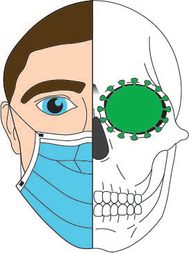The comparison between the skull and the person with a mask is used to show the extremes and to portray the high level of precaution that needs to be taken during the times we are in.