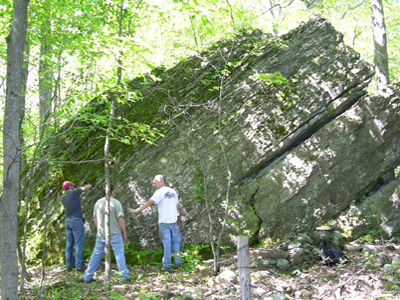 Nate, Jason and Seth puzzling over a chunk of Manlius.
