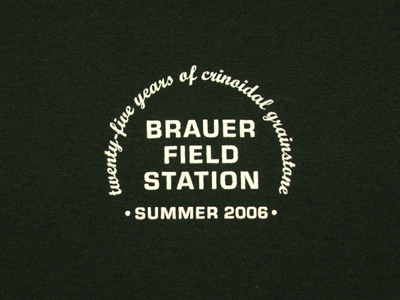 Sarken, Andy, Nate, Rob, Leslie, James, Mike, Stephanie and Bethany putting there noses to the crinoidal grainstone.