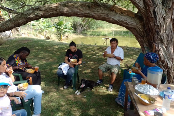 That low-intensity conflict never quite ends, but members acquired farmland near the capital city of Bogotá where they practice a “solidarity economy” and work to defend their cultural identity in the former Spanish colony. AMDAE practices Aulas Vivas, or “living learning spaces,” through its Ethno-Education Project, using an Afro-Colombian style of teaching called Uramba, which is based on the principle of collective responsibility, unity and relationships among humans and non-humans. Its music group performs Afro-Colombian rhythms that highlight ancestral knowledge and folklore and promote African descent connections across borders.