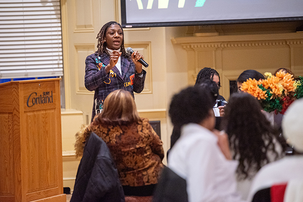 - A student panel facilitated by Cody Harrington, SUNY Cortland assistant professor in the Childhood/Early Childhood Education Department, will speak on “Empowerment through Education: Elevating Black Student Voices” on Tuesday, Feb. 18. The panel, from 4 p.m. to 7 p.m. in Corey Union Function Room, will include students from the Black Student Union, NAACP, Men of Value and Excellence and the Cortland Urban Recruitment for Education (C.U.R.E) program. The groups collaborated with faculty of the Anti-Racism Task Force Education Subcommittee to develop this event focusing on if and how education empowers the voices of Black students.