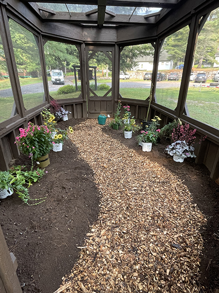 Six monarch butterflies — Danaus plexippus — arrived at the screened, gazebo-like structure in the form of black-yellow-and-white banded caterpillars. Spinning themselves into a glossy, mint green chrysalis state, they literally hung around for a couple weeks before emerging one by one to perch on the wooden beams gently flexing their new wings. Staff bid them goodbye the next day as they departed aloft on a long, multigenerational trip to Florida or Mexico.