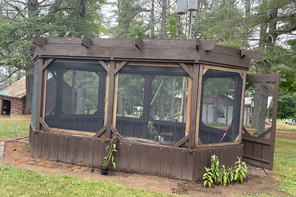 Steven Broyles, SUNY distinguished teaching professor emeritus of biological sciences, conceived of this unusually porous shelter with its removable screened side and ceiling panels.