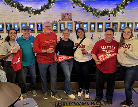 A record 27 Cortaca Nation viewing parties organized by SUNY Cortland’s Alumni Engagement office witnessed Red Dragon football's 28-to-17 point victory against the Ithaca College Bombers on Nov. 16.