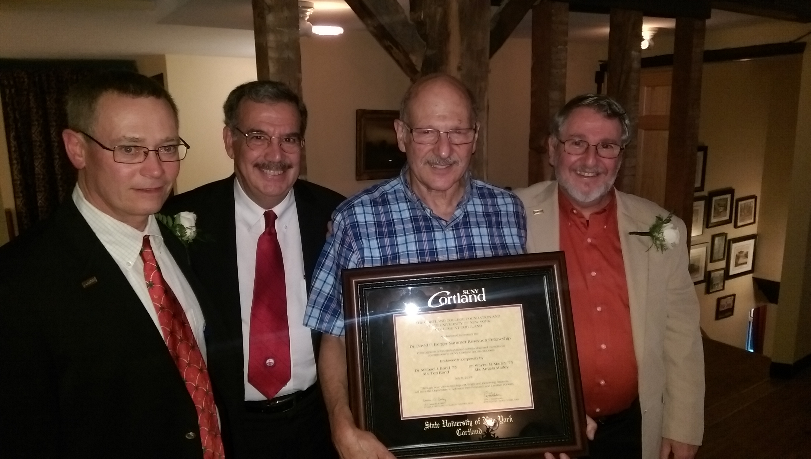 Bond and Marley met when they were SUNY Cortland freshmen in their second semester. Over the next three and a half years, they conducted research alongside Professor Emeritus of Psychology David Berger. The two attended SUNY Upstate Medical University together and went on to successful careers in dermatology: Bond in pediatrics and Marley in surgery.
