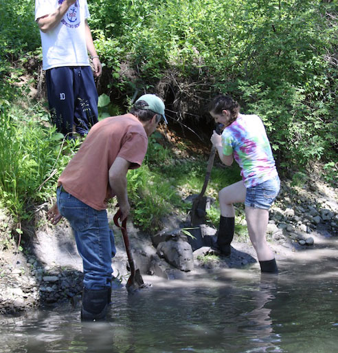Having earned an undergraduate summer research grant to recreate the rare pigment, McKenna — under the supervision of SUNY Cortland’s Jeremiah Donovan, a professor of ceramics in the Art and Art History Department — rolled up her sleeves and dug clay from the banks of the nearby Groton River. Her work paralleled the process the Maya used to collect clay from the rain forest surrounding them.